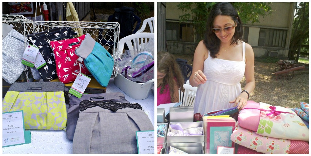 עברנו לדוכן המקסים של My Lovely Sunshine –    רמונה רוזנר פרידמן יוצרת פריטים מקסימים לתינוקות, ילדים ונשים. רמונה היתה בדוכן עם בעלה וילדתם המתוקה שמאד השתדלה לעזור לנו. לאחר התלבטות בחרנו אלה ואני תיקי בד מקסימים, שיש להם רצועת אחיזה, ונוח מאד לאכסן בהם פריטים מועטים. לטיולים קצרים הוא יהיה לי מעולה.