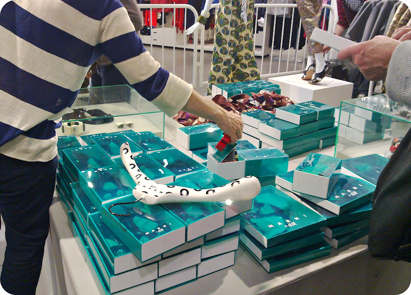 האביזרים ארוזים כולם בקופסאות הירוקות שקופות של מארני, גם הקולבים ממותגים