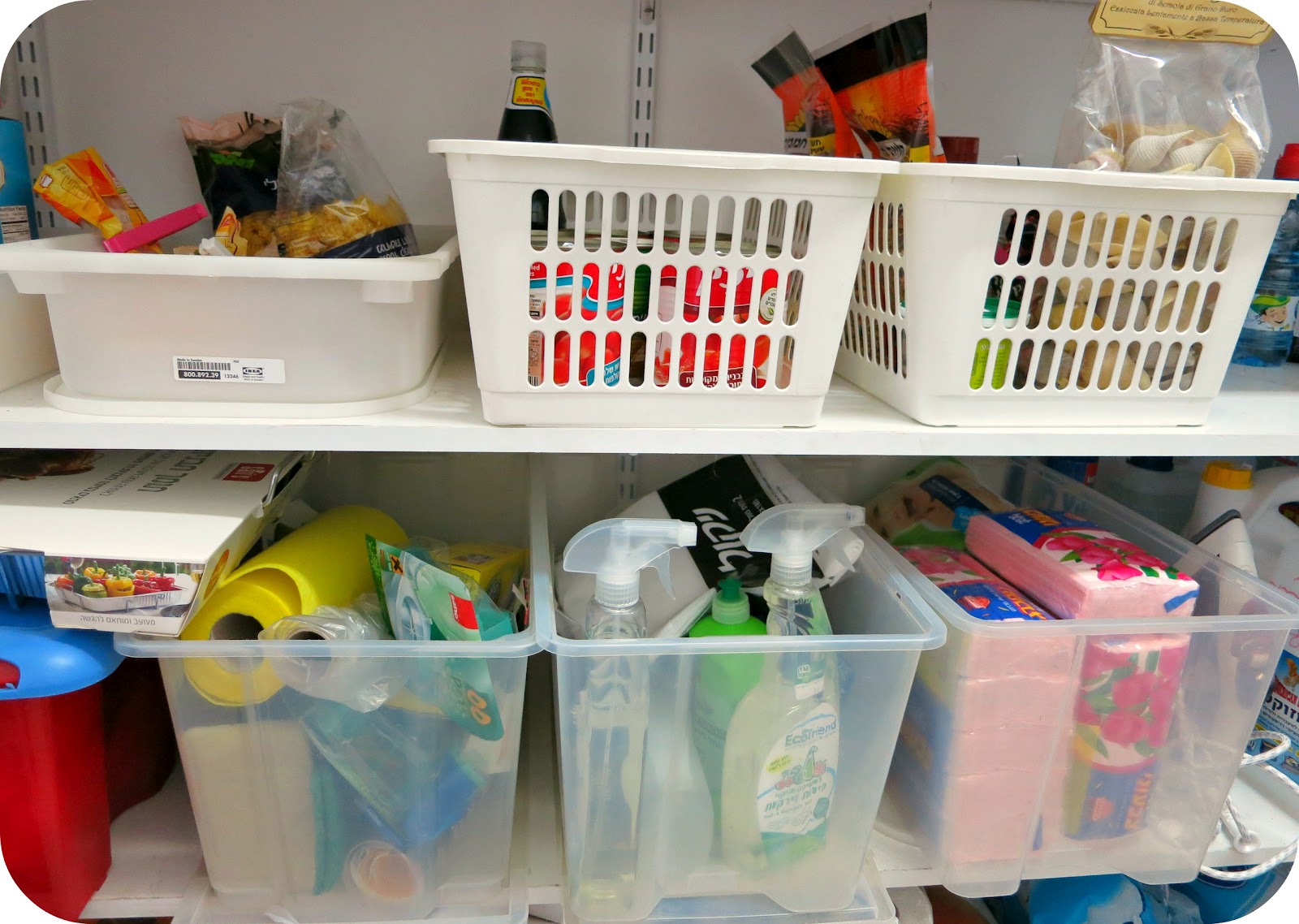 קניתי ארגזים שקופים, גדולים באיקאה, וחילקתי את מוצרי המזון