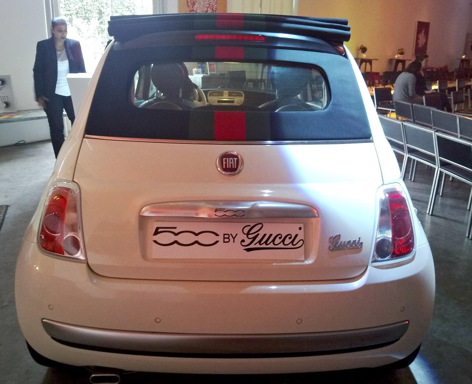 הצבעים של גוצ’י על המושבים, על הגג המתקפל.