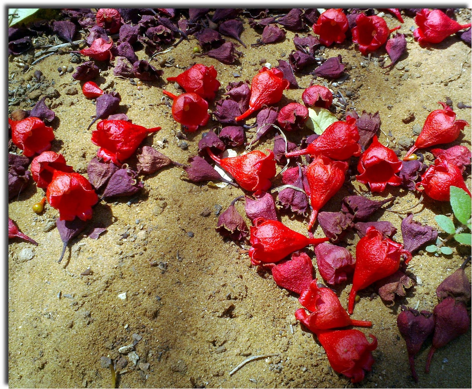 המדרכה, החול, השיחים – כולם התמלאו באדום אדום הזה