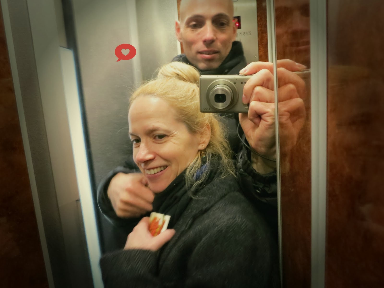 הפעם היחידה שעליתי על האייפל, היתה לפני הרבה שנים, וגם אז עליתי בשעות הערב המאוחרות, בחשכה. המראה בחושך מאייפל הוא נהדר, העיר מוארת בצורה כל כך יפה, וזו חוויה מיוחדת במינה. זמן רב עבר מאז וכבר לא רציתי לעלות עליו, רק להסתובב לידו, לשבת לידו עם אהובי, ולהינות מהמגדל ומהאווירה שסביבו. יצאנו לכיוון והספקנו להנציח אותנו בתוך המעלית הזעירה, שבקושי